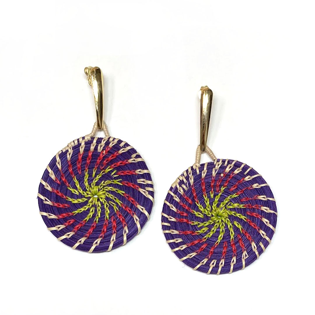 Inspired by Bolivia’s vibrant roots, these Universo Místico (Mystic Universe) earrings are handwoven from palm leaves collected in the forest and delicately hand-painted in vivid hues. Each spiral design honors the connection between earth and sun, nature and tradition — a true piece of wearable art crafted by indigenous artisans.